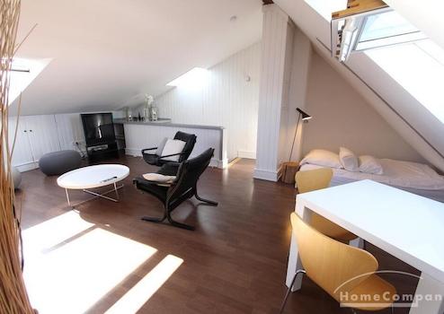 Sehr geschmackvoll und modern möbliert, mit viel Liebe eingerichtet. Absolut hell, ein Raumwunder. Ein wirklich schönes Designer-Apartment, direkt in der Bonner Innenstadt.