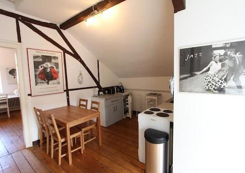 Hier fühlt man sich direkt wohl. Das Besondere an der Wohnung sind die Holzdielen und -balken, die wohnliche Wärme vermitteln.