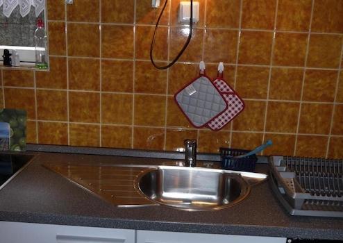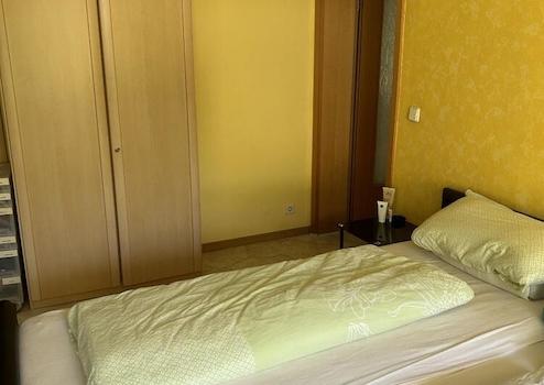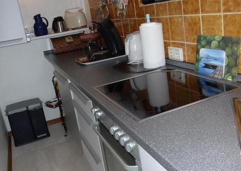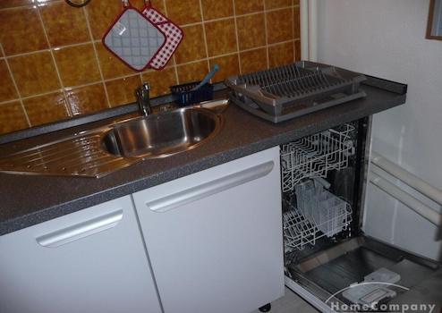 Die Küche ist vollständig ausgestattet und verfügt über einen Herd, einen Kühlschrank mit Gefrierfach, eine Spülmaschine, Töpfe, eine Kaffeemaschine sowie komplettes Geschirr und Besteck. Im Wohnzimmer finden Sie einen gemütlichen Sessel, eine Couch, einen Schrank, einen Fernseher und WLAN. Ein Schreibtisch, ein Bürostuhl sowie ein kleiner Esstisch mit Stuhl stehen Ihnen ebenfalls zur Verfügung.