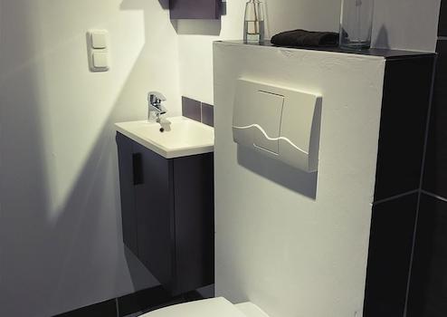 Das neue Duschbad ist ganz Brauntönen gehalten.