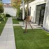 Schicke Zwei-Zimmerwohnung mit moderner Ausstattung und technischen Details: Bewegungsmelder und Videosprechanlage, Fußbodenheizung, automatische Bewässerungsanlage für die kleinen bepflanzten Beete im Terrassenbereich, der mit kleinen Lampen romantisch beleuchtet ist.