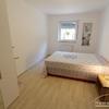 Das Schlafzimmer ist mit einem 140er Bett, geräumigen Kleiderschrank und Nachtisch eingerichtet.