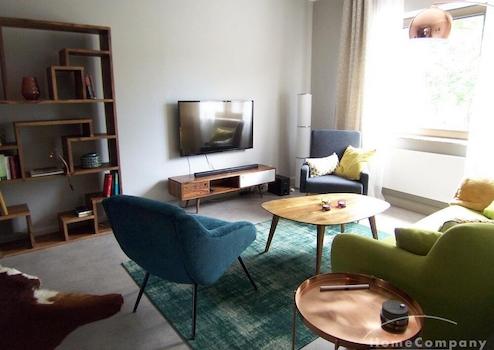 Teilweise im 50er Jahre Look (Spezialwandfarbe aus England importiert) möblierte 3-Zimmer-Wohnung. Die Wohnung ist durch und durch ein absolutes Highlight.