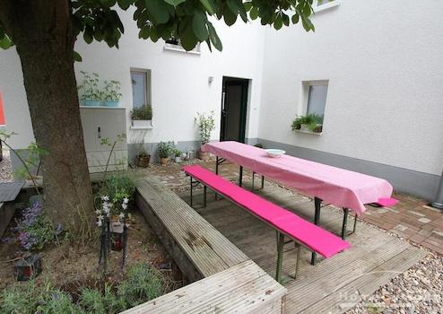 Liebevoll eingerichtete 2-Zimmer-Wohnung, die Gemütlichkeit ausstrahlt, im Schlafbereich finden ein Doppelbett und ein Schreibtisch Platz, generell viel Stauraum dank eines großen Kleiderschrankes, Massagesessel und Sofa im Wohnbereich. Moderne und in rot gehaltene Einbauküche mit Waschmaschine, Bistrotisch und Mikrowelle. Top saniertes Badezimmer mit Dusche.