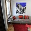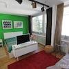 Die Wohnung bietet Ihnen ein kombiniertes Wohn- und Schlafzimmer mit einem komfortablen Bett (1,40 m), das für erholsame Nächte sorgt. Bettwäsche wird gestellt, um Ihnen den Aufenthalt so angenehm wie möglich zu gestalten. Die Wohnung verfügt über eine moderne Möblierung und ist geschmackvoll eingerichtet. Auf Anfrage ist ein Reinigungsservice gegen Aufpreis möglich.