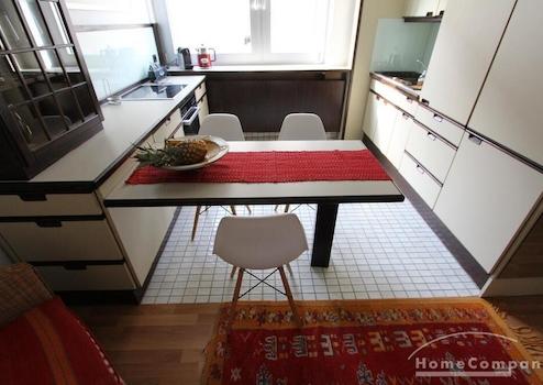 Die Wohnung besticht durch ihre moderne Möblierung und den Laminatboden, der ein angenehmes Wohnambiente schafft. Die Küche ist mit einem Herd, Backofen und verschiedenen kleinen Elektrogeräten ausgestattet. Das Duschbad ist mit einer Rain-Shower ausgestattet. Für die Unterhaltung steht Kabel-TV zur Verfügung, und ein DSL WLAN-Internetanschluss ist inklusive. Eine Waschmaschine steht im Keller zur Verfügung.