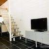 Weitere Details: Flachbildfernseher mit Kabelanschluss, sonnendurchflutet aufgrund eines großen Dachfensters, Dielenboden im Schlafbereich, moderner Fliesenboden im Wohnbereich, Waschmaschine.