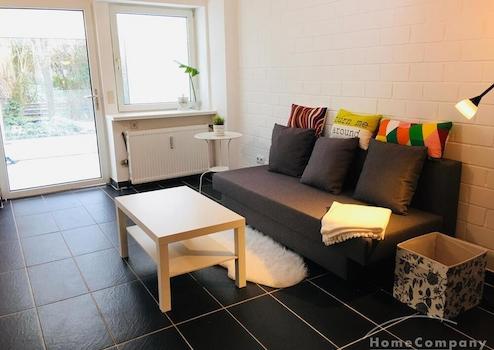 Die stilsicher möblierte 2-Zimmer-Maisonette-Wohnung befindet sich in Sürth, vor den Toren Kölns. Sie verfügt über eine weitläufige Terrasse und einen eigenen PKW Stellplatz.