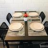 Auf der unteren Etage befinden sich das Wohn-Esszimmer mit offener Küche, die voll ausgestattet ist, einem Sofa mit Gästebettfunktion und einem schönen Esstisch und das weiß geflieste Badezimmer mit Badewanne.