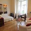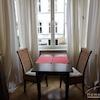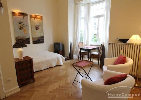 Eine sehr gelungene Wohnung im eleganten Landhausstil. Der Wohn-Schlafraum ist in zwei Bereiche aufgeteilt. Eine gemütliche Schlafecke mit einem 140cm beriten Bett und einem Wohnbereich mit Essecke. Das Appartment ist in einem wunderbaren alten Haus mit hohen Decken gelegen. Ein traumhaftes Duschbad rundet die einladende Wohnung ab.