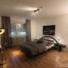 Das elegant eingerichtete Schlafzimmer mit 140er Bett.
