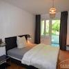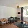 Schöne Zwei-Zimmer-Wohnung in der Nähe des Tierparks Berlin. Die Wohnung ist möbliert und verfügt über ein Schlafzimmer und ein Wohnzimmer. Waschmaschine und Geschirrspüler sind vorhanden. Im Wohnzimmer gibt es einen Essbereich und ein großes, gemütliches Sofa. Die Küche ist sehr geräumig und bietet einen weiteren, kleinen Esstisch.