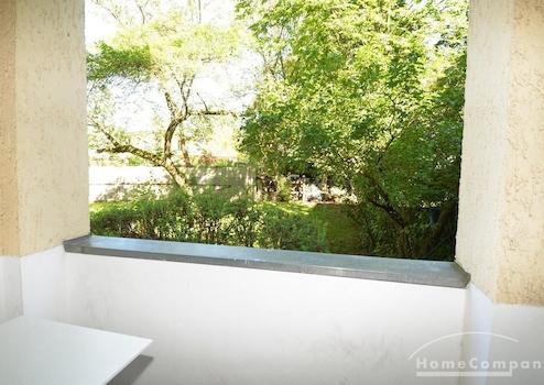 Ein Highlight der Wohnung ist der Balkon mit Ausblick auf den grünen Innenhof.