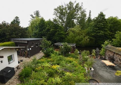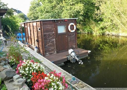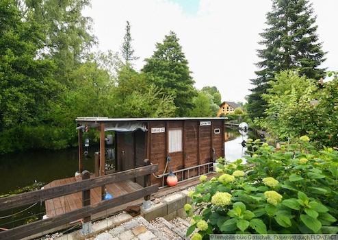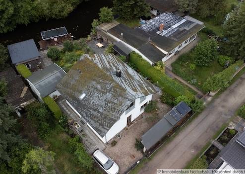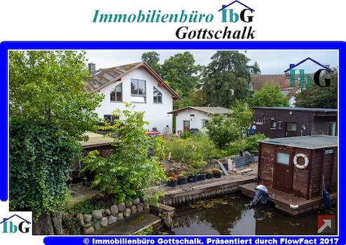 Das Grundstück ist zu drei Seiten mit Zäunen und Hecken eingefriedet und nach Nord-Osten begrenzt ein befahrbarer Seitenarm des Oder-Havel-Kanals. Es ist mit einem modernem Wohnhaus sowie mit Nebengelass bebaut.