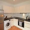 Die Küche ist vollständig ausgestattet, ohne Geschirrspülmaschine.