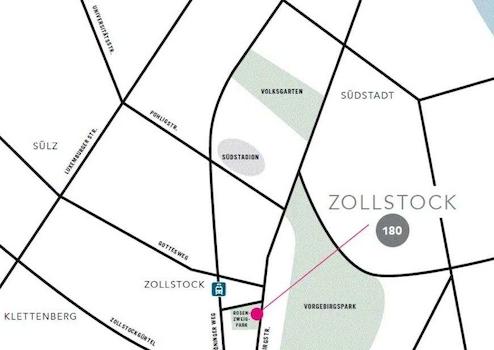 Highlight: Der schöne Rosenzweigpark mit einem großen Kinderspielplatz direkt vor der Tür und dem Vorgebirgspark, der sich bis zum Grüngürtel erstreckt - die "grüne Lunge" von Zollstock. Last but not least das Südstadion und Zollstockbad, alles fußläufig zu erreichen.