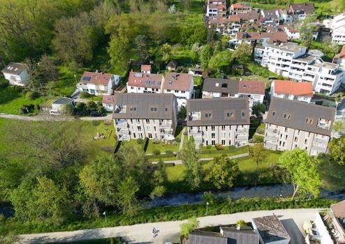 Schöner Wohnen in neuem Blickwinkel. Eine breite, bodentiefe Glasfront, ausgerichtet nach Süden zu den Terrassen, Balkonen und Loggien verspricht lichtdurchflutetes Wohnen und einen schönen Blick auf die Körsch.