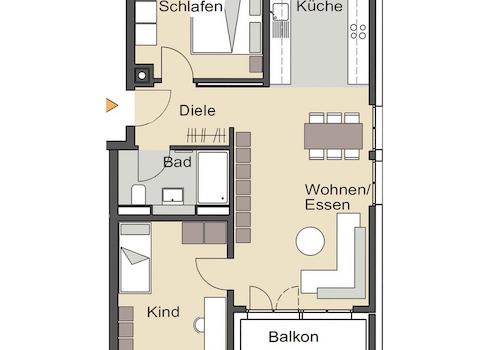 • Wohnungsgrößen von 70 bis 107 qm