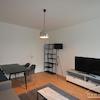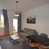 Die Wohnung ist möbliert und verfügt über ein Schlafzimmer und ein Wohnzimmer. Waschmaschine und Geschirrspüler sind vorhanden. Im Wohnzimmer gibt es einen Essbereich und ein großes, gemütliches Sofa. Die Küche ist sehr geräumig und bietet einen weiteren, kleinen Esstisch.