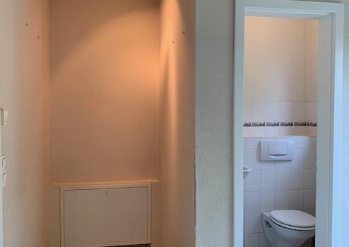vom Eingangsbereich aus gelangt man linksseitig in die Küche. Im Flur rechts befindet sich ein Gäste-WC mit Tageslichtfenster.