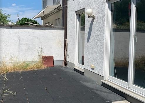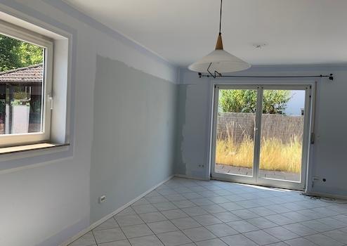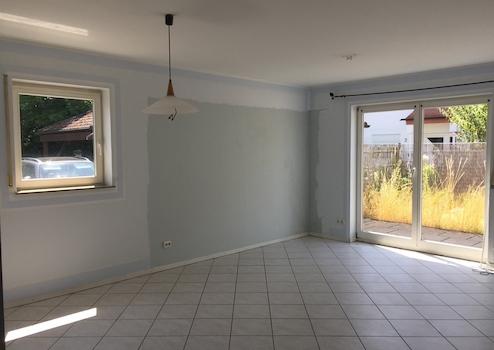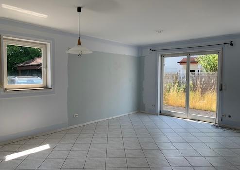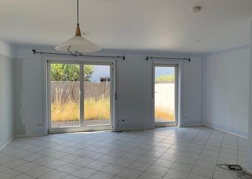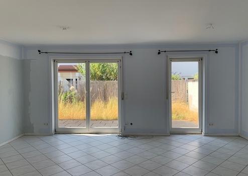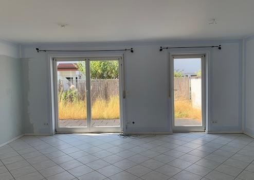 Vom Wohnzimmer hat man Zugang auf die Terrasse und in den kleinen Garten. Die Terrasse ist mit einem Seitentor ausgestattet.