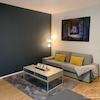 Zur Ausstattung gehört u.a. ein komplett ausgestattete Küche, ein Waschtrockner, das Wohnzimmer mit TV und IP TV und VDSL Internet.