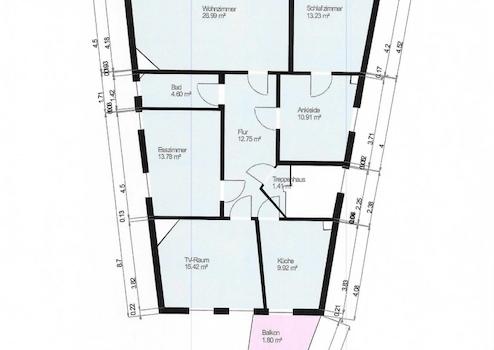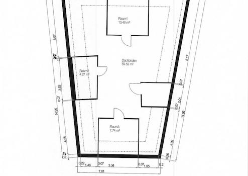 - ein Dachgeschoss mit einer Nutzfläche (Ausbaureserve) von 82 m²