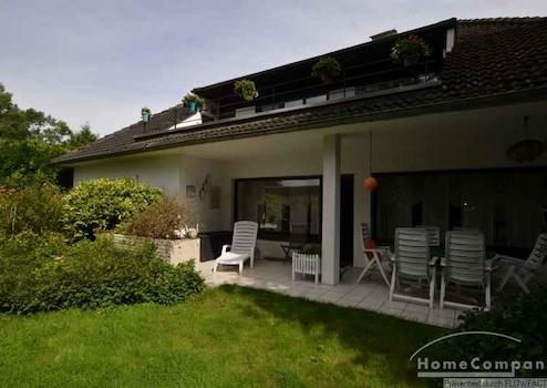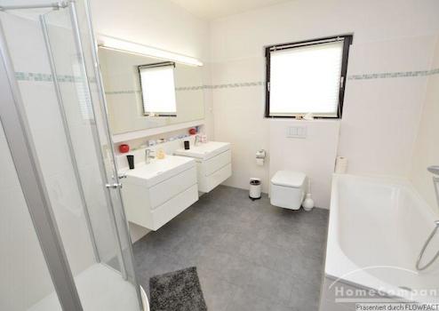 Bei dem Objekt handelt es sich um ein freistehendes Haus in einer Reihenhaussiedlung direkt an einem kleinen See liegend. Das Haus erstreckt sich über zwei Etagen und ist mit drei liebevoll ausgestatteten Schlafzimmern versehen. das Herzstück des Hauses ist das große Wohnzimmer mit Kachelofen und einem separaten Essbereich. Vom Wohnzimmer aus gelangt manauf die großzügige Terrasse mit dem weitläufigen Garten und direktem Zugang zum See. Auf jeder Etage befindet sich ein modernes Bad mit Badewanne und Dusche. Über das Treppenhaus gelangt man in die obere Etage. Dort befindet sich noch ein zweites Wohnzimmer mit Kamin und einer Bar mit Lounge. Alle Schlafzimmer sind mit einem großen Doppelbett ausgestattet. Die Wohnung ist perfekt für eine größere Familie oder drei Kollegen. Ein monatlicher Reinigungsservice ist im Mietpreis inkludiert.