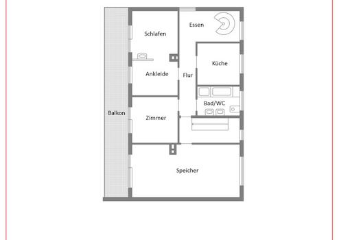 Das Gebäude teilt sich in vier Stockwerke mit 15 Zimmer. Pro Wohneinheit haben Sie je ein Badezimmer und eine Wohnküche zur Verfügung. Es gibt drei neuwertige und eine Einbauküche aus den 90er Jahren.