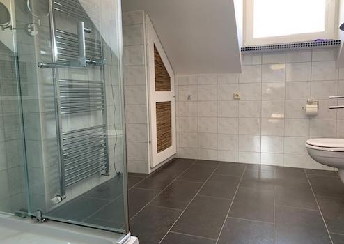 Waschmaschine im Badezimmer, Duschbad, Schlafcoach im Wohnzimmer,