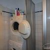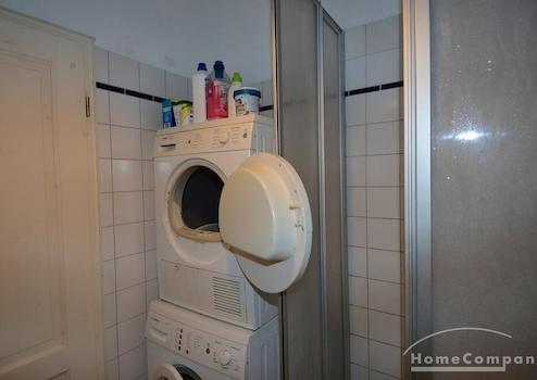 Am Flur befindet sich das kleinere Badezimmer mit Dusche, Waschmaschine und Trockner.