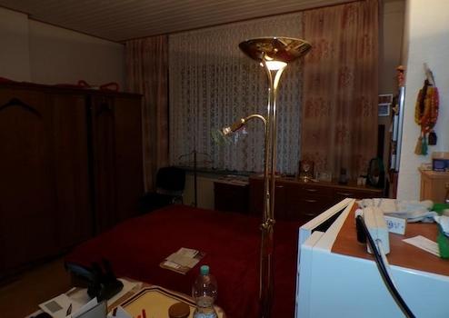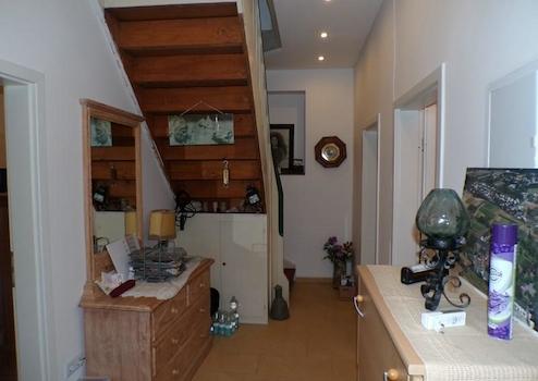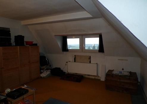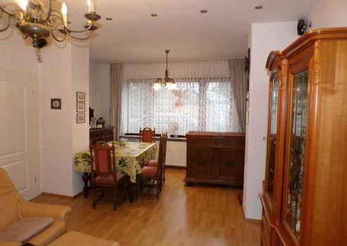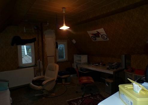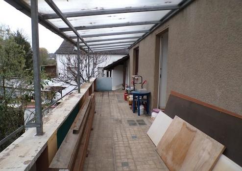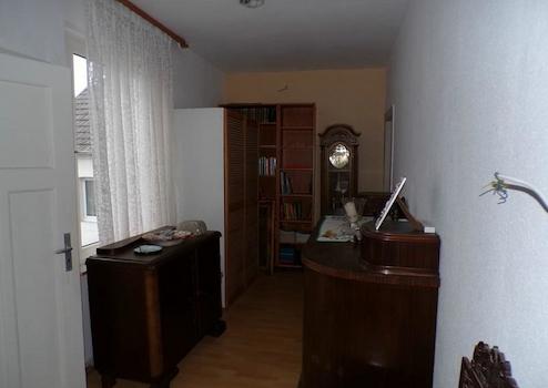Bei dem Objekt handelt es sich um einen großes Reiheneckhaus mit Anbau, großem Nebengebäude, in welchem sich 2 Garagen und ein Fahrzeugschuppen befinden. Der Garagenteil des Nebengebäudes ist unterkellert. Der Außenbereich ist durch eine Mauer mit einem großen Tor in einen Vorhof mit 2 Stellplätzen und einer Grünfläche mit einem Lagerzeltbereich vom Innenhof getrennt. Das Nebengebäude (Garagen und Fahrzeugschuppen) und der EG des seitlichen Anbaus, sowie der Hauskeller haben ihre Zugänge alle in diesem Innenhof. Die große Küche befindet sich im EG dieses Anbaus. Neben dem großen Wohn-Esszimmer befinden sich noch eines der beiden Bäder und das Arbeitszimmer im EG. Im I.OG befinden sich das 2.te Wohnzimmer, das große Schlafzimmer, sowie ein Zimmer als 2.tes Esszimmer oder 2.tes Schlafzimmer und eine Wohndiele, sowie des 2.te Bad. Über den großen und überdachten Balkon kann der Bereich des Anbaus im I.OG (über der Küche) erreicht werden. Der dortige Raum ist jedoch noch nicht ausgebaut worden. Es existiert eine noch nicht montierte Stahltreppe, die zusätzlich vom Innenhof aus einen weiteren Zugang zu diesem Balkon und dem Raum über der Küche im I.OG herstellen sollte. Diese Treppe wurde jedoch noch nicht aufgebaut. Im II.OG sind noch einmal 3 Zimmer und eine weitere Wohndiele vorhanden. Die Renovierung, welche die bisherigen Eigentümer in den letzen Jahren durchgeführt haben, sind im EG sehr weit fortgeschritten. Auch im I.OG sind bereits die Mehrheit der Räume fertiggestellt oder zumindest im fortgeschrittenen Stadium. Im II.OG sind alle Räume jedoch noch renovierungsbedürftig.
