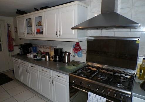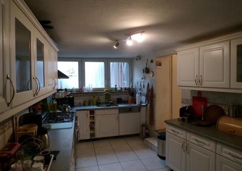Das Bad im EG ist ein Duschbad, das Bad im I.OG dagegen hat Badewanne. Beide haben natürlich eine Toilette, sodas ein separates Gäste WC entfällt. Die im EG im Anbau befindliche Küche ist mit einer großen und modernen Möbeln und Geräten passend ausgestattet. Diese Einbau-Küche kann beim Hauskauf mit erworben werden. Sowohl die Lage des Objektes, als auch die Größe und die weiteren Gegebenheiten wie Nebengebäude und Stellplätze lassen sicherlich die Optionen von Umbauten des Objektes, weg von einem reichen Einfamilienhaus, hin zu einem - "entweder Mehrfamilienhaus", als evtl. auch einem - "Einfamilienhaus mit einem selbstgenutzten Gewerbe" denkbar erscheinen. Selbstverständlich eignet es sich sehr gut als familiäres Generationenhaus.