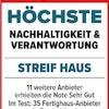 Die hohe Wertigkeit und Langlebigkeit eines STREIF-Energiespar-Hauses werden durch zahlreiche Auszeichnungen, Qualitäts- und Gütesiegel unabhängiger Institute und Verbände dokumentiert.