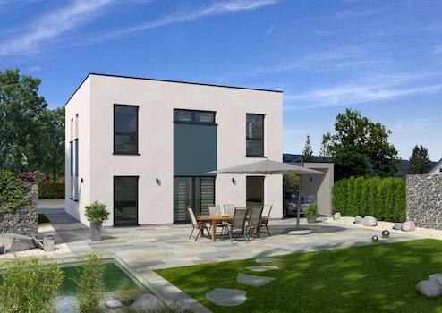 Der extravagante Entwurf der Stadtvilla im Bauhausstil sucht seinesgleichen. Ein Understatement in exklusivem Stil und vielen Details. Die Garage schmiegt sich als fließendes Element mit dem überdachten Hauseingangsbereich an das Gebäude an. Eine Wohnraumerweiterung im Wohn-/Essbereich wird als überdachte Terrasse fortgeführt. Die Gebäudekörper sind farblich akzentuiert. Ein weiteres typisches Element des Bauhausstils ist das Flachdach, welches diesen Hausentwurf perfektioniert. Die Grundrissgestaltung überzeugt trotz eines kompakten Grundrisses mit 3 Schlafzimmern, 3 Bädern, einem zusätzlichen Raum im Erdgeschoss, mit einem großzügigen Wohn-/Ess- und Kochbereich. Über einen praktischen Nebeneingang gelangt man direkt vom Hauswirtschafts-/Haustechnikraum in die Garage. Dieser Hausentwurf ist nur ein Gestaltungsvorschlag. Individuelle Anpassungen wie z. B. in der Hausgröße, der Dachgeometrie oder den Fenstergrößen und -positionierungen sind möglich. Fragen Sie Ihren persönlichen STREIF-Bauberater.