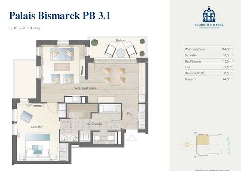 Die Apartments und Penthäuser bieten Dir zwischen ca. 60 m² und 120 m²:
