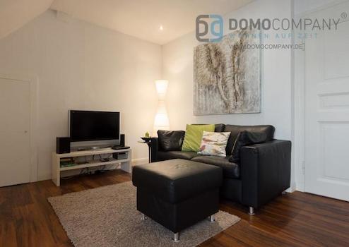 2-ZKB, Abstellraum, Bett gross o. Dop., Dusche/WC, Einbauküche, HiFi o. Radio, Internet, Kühl-/Gefrierkombi, offene Küche, Telefon, TV, Zentralheizung, Waschmaschine, Designboden, Wäschetrockner, Altbau saniert, Dachgeschoß, Einliegerwohnung, Keine Tiere, möbliert, Nur für Nichtraucher, Nur für Einzelperson