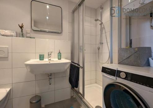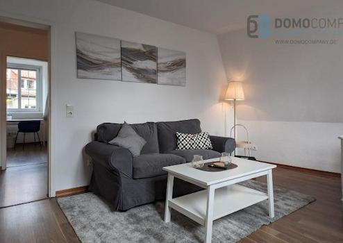 Hier bieten wir Ihnen ein weiteres Highlight der DomoCompany Münster. In einem sanierten Altbau in unmittelbarer Nähe Schloss in Münster wurde diese schöne, ruhige 2-Zimmer-Wohnung komplett renoviert und mit neuen Möbeln, Fussboden und Technik eingerichtet. Zur technischen Ausstattung gehören unter anderem Internet per DSL, ein Flatscreen-TV mit Kabelfernsehen, ein Waschmaschinen-Trockner-Kombigerät und eine komplett eingerichtete Küche inkl. Staubsauger, Senseo-Kaffeeautomat, Bügeleisen und Bügelbrett. Hier fühlt man sich gleich wie Zuhause. Die Miete ist für eine Einzelperson kalkuliert. Für eine zweite Person würden EUR 50,- pro Monat extra berechnet werden. (Dieses Angebot ist bis auf kleine Details identisch mit unseren Angeboten AG4481 und AG4482 im ersten bzw. zweiten Stockwerk des selben Gebäudes) Pflichtangaben zum Energieausweis: Energieausweis gültig bis: 11.4.2029; Baujahr Gebäude: 1950; Energieausweis: nach Bedarf; Energiebedarf: 203.7 kWh/m2a; Primärer Energieträger: Erdgas E
