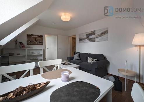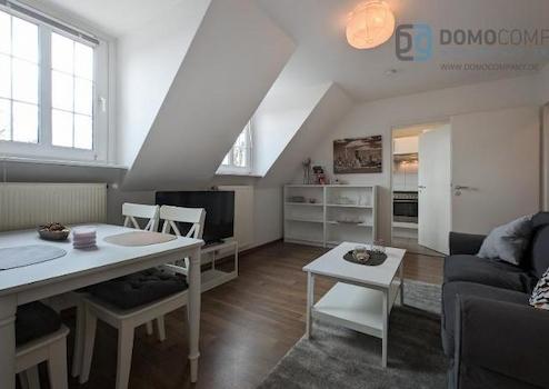 2-ZKB, Bett gross o. Dop., Dusche/WC, Einbauküche, Flur, HiFi o. Radio, Internet, Küche, Kühl-/Gefrierkombi, Laminat, Trockner, TV, Waschmaschine, Zentralheizung, Wäschetrockner, Altbau saniert, Appartmenthaus, Keine Tiere, möbliert, Nur für Nichtraucher, Dachgeschoß