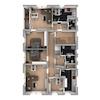 + Badezimmer mit Dusche, WC, zwei Waschbecken sowie Platz für Waschmaschine/Trockner