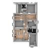 + Badezimmer mit Dusche, WC, zwei Waschbecken sowie Platz für Waschmaschine/Trockner