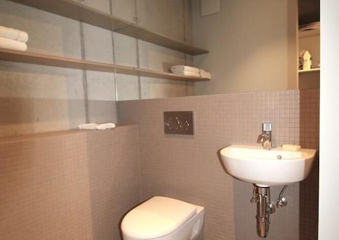 + Im Inneren wurde auf Anstriche und Verkleidungen weitgehend verzichtet, der Baustoff Beton wird kombiniert mit natürlichen Materialien wie Holz oder Keramik.