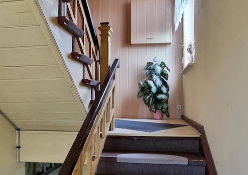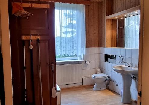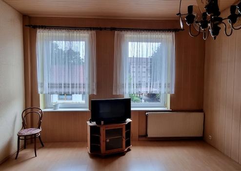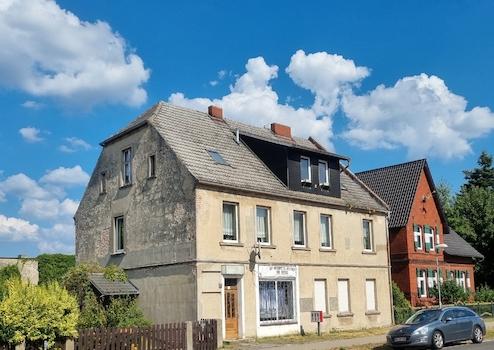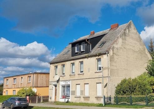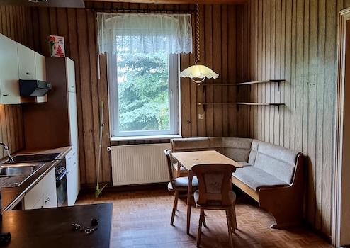 Das Wohnhaus verfügt bereits über zwei Wohnungen, die mit recht überschaubarem Aufwand hergerichtet werden könnten. Die Wohnung im Dachgeschoss benötigt eine etwas höhere Investition. Im Haus wir derzeit nur der gute alte Kachelofen genutzt. Sie sehen auf den Bildern Heizkörper, die aus der Zeit des Betriebes, mit einer Gastherme stammen. Der auf dem Grundstück stehende Gastank ist ebenfalls aus dieser Zeit, wird aber nicht mehr genutzt. Eine Gasleitung befindet sich inzwischen vor dem Grundstück. Warmes Wasser bekommt man elektrisch.