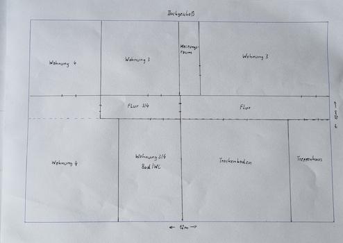 Auf Grund des fehlenden Aufmaßes gehen wir von einer !geschätzten! Wohnfläche von ca. 340 m² aus.