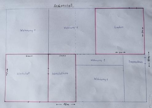 Das Nebengebäude haben wir bereits mit minus 10 T€ angesetzt. Hier sind umfangreichere Abrissarbeiten nötig. Aber vielleicht reicht es ja, wenn der rechte, bessere Teil des Nebengebäudes stehen bleibt.