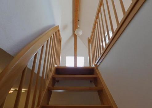 Man betritt das Haus von der Ortsstraße kommend durch ein helles und offen gestaltetes Treppenhaus, dass ein großzügiges Raumgefühl vermittelt und auch das Einbringen sperriger Möbel ermöglicht.