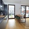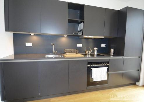 Neubauwohnung in Berlin Prenzlauer Berg. Sehr moderne, sonnige, und ruhige Stadtwohnung im 2.OG zum begrünten, großen Innenhof in 2018 fertiggestellter Wohnanlage (Gotland) in süd-westl. Ausrichtung. Möbliert mit stilvollen, hochwertigen Möbeln und Einbauküche mit Spülmaschine. Parkettboden in kompletter Wohnung. Bodentiefe Fenster, die viel Licht geben, großer Balkon, Fußbodenheizung.