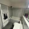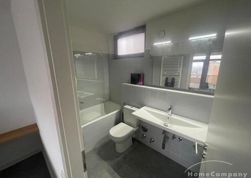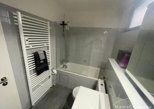 Private Badeinrichtungen im 1-Zimmer-Apartment mit hochwertigen Armaturen, einschließlich einer Badewanne für entspannende Momente.