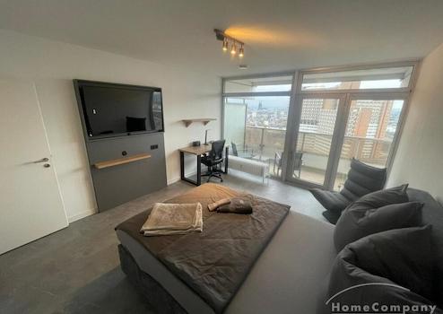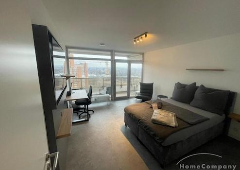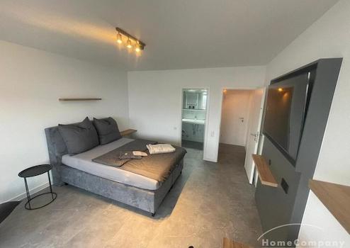 Hochwertig eingerichtetes und stilvolles 1-Zimmer-Apartment mit modernen Möbeln und ansprechendem Design.