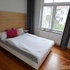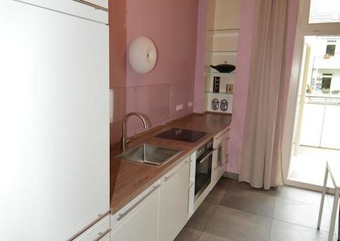 Wohn- und Esszimmer sind mit einer Schiebetür zusätzlich verbunden. Das Schlafzimmer liegt zum Hinterhof. Weiterhin verfügt die Wohnung über ein Duschbad, eine Einbauküche sowie zwei Balkone. Im Mietpreis ist eine Abschlagszahlung in Höhe von 50 Euro für Strom und 80 Euro für die Heizung enthalten. Die Abrechnung erfolgt bei Auszug.